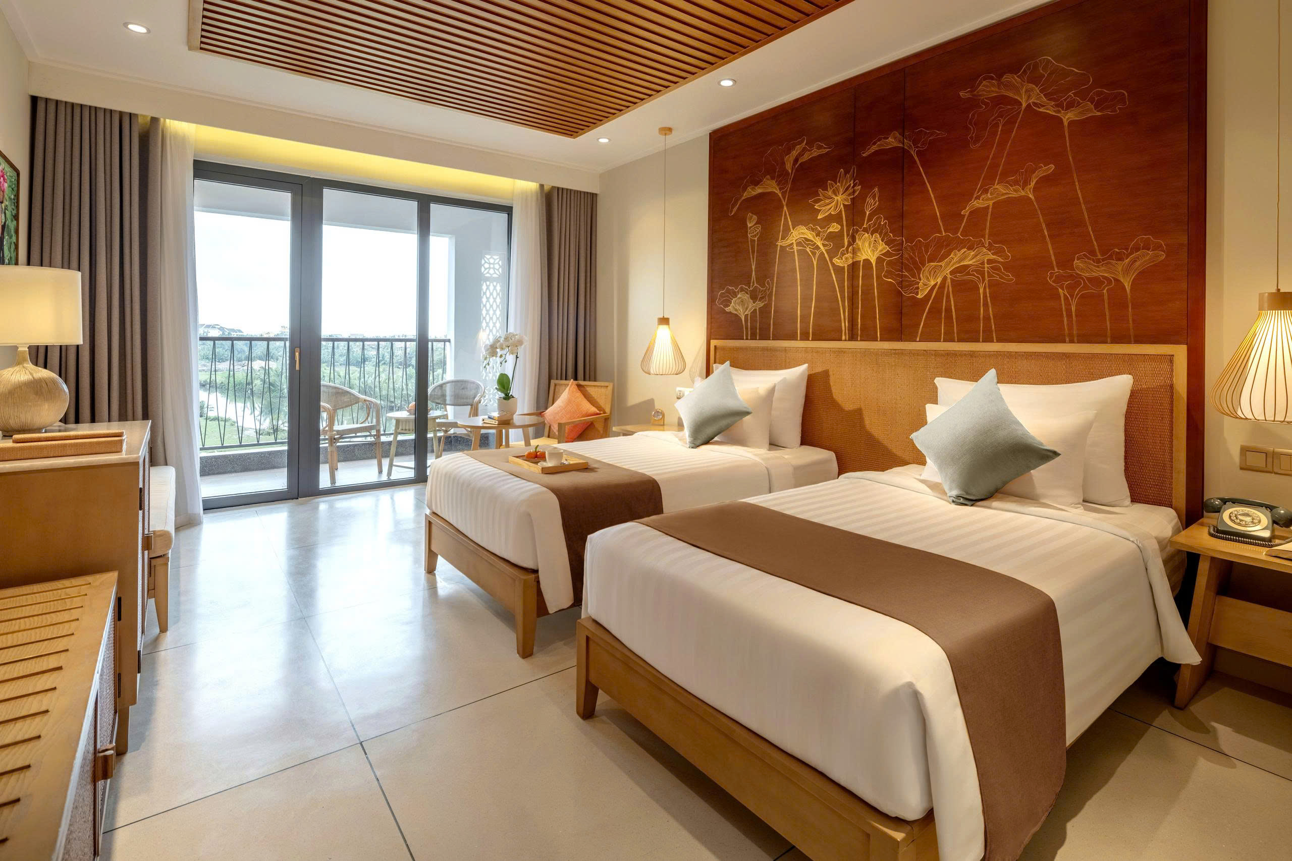 Nestled by the gentle Do River and surrounded by lush gardens and green rice fields, Little Oasis feels like a miniature Vietnamese village hidden within nature. From the balcony, guests can watch water buffaloes grazing and white storks gliding across the peaceful sky — a poetic picture of rural Vietnam.